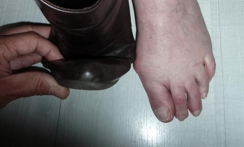 Exemple d'une mauvaise chaussure qui entraine les douleurs de l'avant pied.