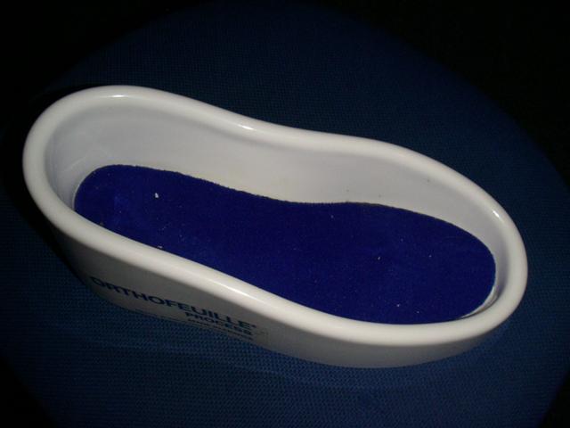 Plan de la semelle en résine thermoformée monobloc en vue de dessous.