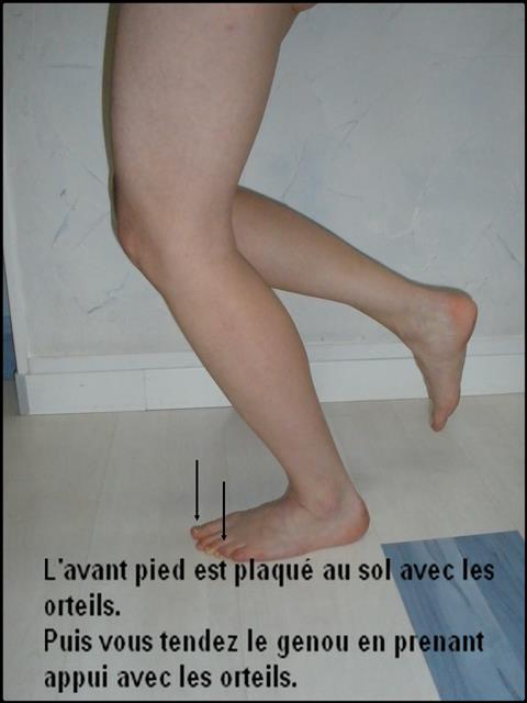 Tout d'abord, prendre conscience de la nécessité de freiner le pas avec les orteils et le gros orteil (rééducation de la marche).