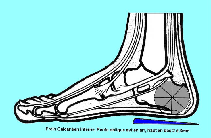 On va "caler" l'appui du calcanéum afin qu'il ne "tire" plus sur les ligaments et muscles internes lors de l'appui unipodal.